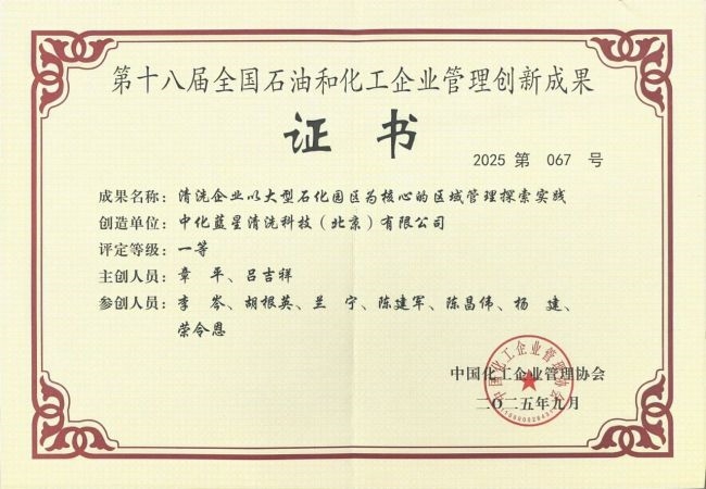 近日,第十八届“全国石油和化工企业管理创新大会”在北京会议中心召开,经过严格的初审、复审以及专家委员会的评审,中化蓝星清洗申报的《清洗企业以大型石化园区为核心的区域管理探索实践》凭借卓越的管理创新实践从全国数百余项申报成果中脱颖而出,荣获企业管理创新成果一等奖,这也是中化蓝星清洗连续两年获此殊荣。此次获奖,不仅是对公司综合管理实力的权威认证,也彰显了其在推动行业转型升级、培育新质生产力方面的示范与引领作用。