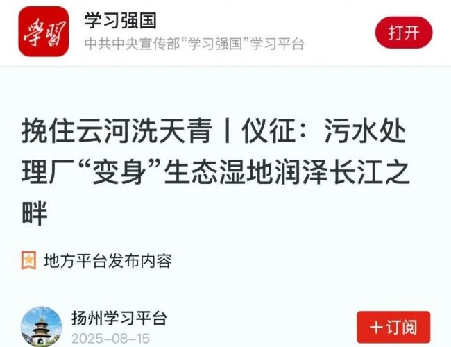 从临危受命扭转环保困局,到技术创新破解行业痛点;从“一企一管”升级管理效能,到生态湿地与中水回用构建循环体系。扬州化雨始终以提升工业废水处理技术行业引领力为奋斗目标,不断夯实中化环境水循环发展战略的“压舱石”作用,将央企使命担当融入污水治理的每一个环节。